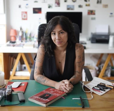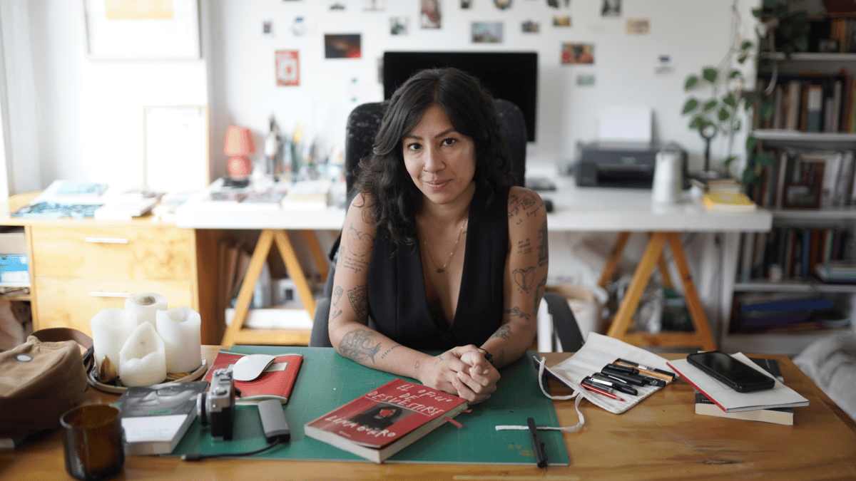 Cali, 1990. Poetógrafa, coleccionista de diarios y cajas de fósforos. Fusiona poesía visual y escrita, video-ensayo, performance y fotografía, donde aborda lo íntimo y autobiográfico, priorizando la experiencia creativa y las emociones humanas. Tiene una maestría en Fotografía Contemporánea en Madrid y ha expuesto su obra en Colombia y España, en galerías como NC-arte y La Cometa. Ha publicado en Vogue Latinoamérica, enseña Poesía Visual en Domestika y ha retratado a artistas, músicos y escritores, en espacios como festivales y la Feria Internacional del Libro de Bogotá.